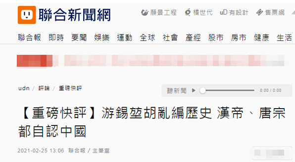 聯合新聞網25日直言,“這是一個徹頭徹尾的偽史論”,游錫堃竟將整個中華大地上承載了數千年的一個強盛民族貶為一個完全失去主體的文化地理名詞,“在他眼中竟然沒有了中國,而只有東亞?沒有了中華文明,而只有東亞文明?”
