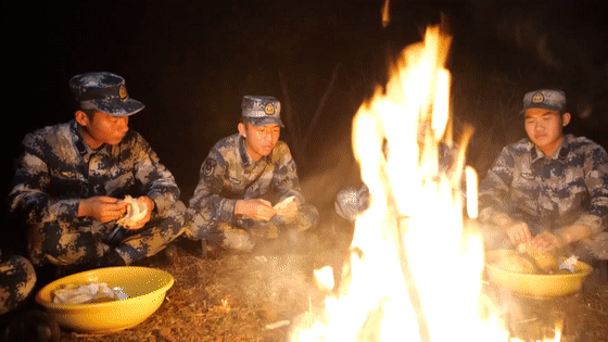 新兵們找來石塊樹枝