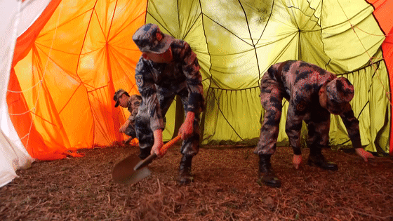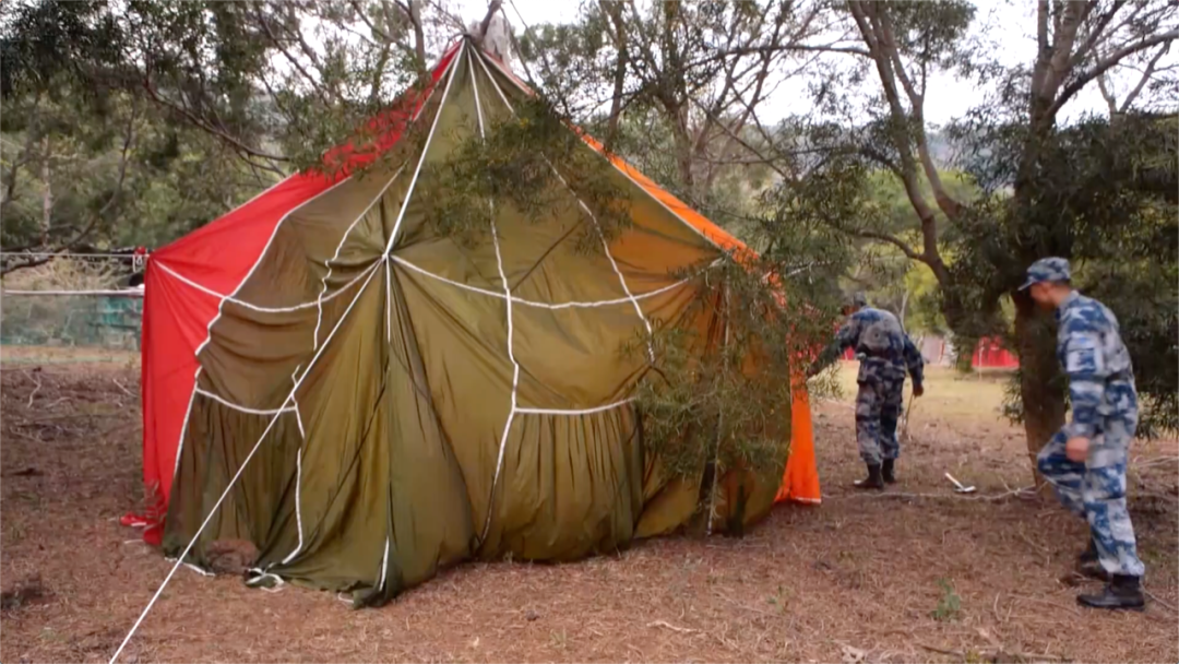 大家齊心協力搭起帳篷