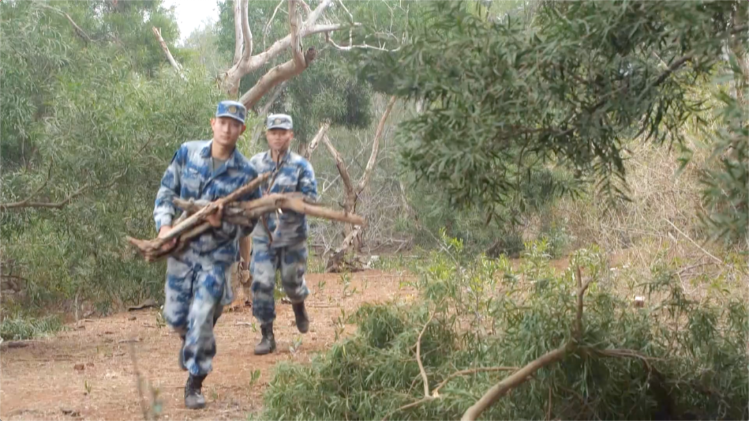 新兵們找來竹子、木頭