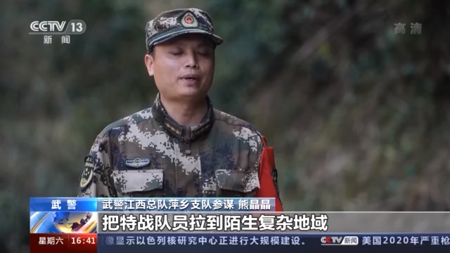 武警江西總隊萍鄉支隊參謀 熊晶晶: 我們結合江西山高林密水系多等特點,把特戰隊員拉到陌生複雜地域,採取隨機導調的形式構設典型實戰場景,讓特戰隊員在高難度、大強度、多課目連貫作業中提升反恐作戰能力。