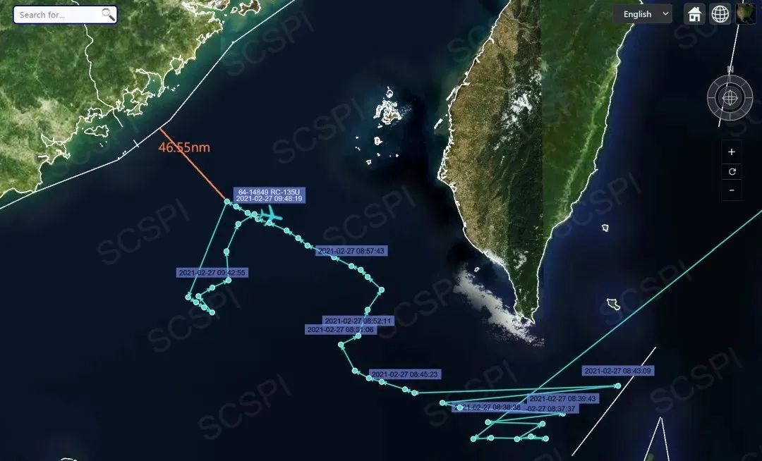 另外,2月27日上午,美空軍一架RC-135U型戰略偵察機,從沖繩起飛,經巴士海峽前往廣東外海偵察,最近距離中國領海基線約為46.65海里,真實情況也許更近。