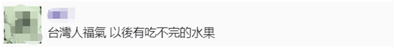 還有網友諷刺説,台灣人福氣,以後有吃不完的水果。↓