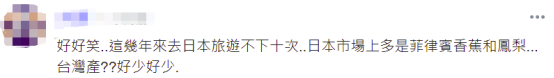 還有網友説:“好好笑……這幾年來去日本旅遊不下十次……日本市場上多是菲律賓香蕉和鳳梨……台灣產??好少好少。” ↓