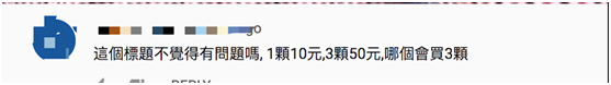 “這個標題不覺得有問題嗎?1顆10元,3顆50元,哪個會買3顆”