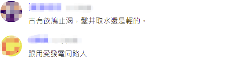 有人開調侃稱,“古有飲鳩止渴,鑿井取水還是輕的”“跟用愛發電是同路人”。↓