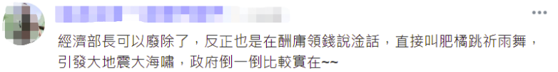 對於王美花“鑿井取水”之説,島內網友也留言諷刺:“乾脆跳祈雨舞算了”“我覺得跳祈雨舞好一點”“突然覺得祈雨是個很理智的舉動呢”。↓