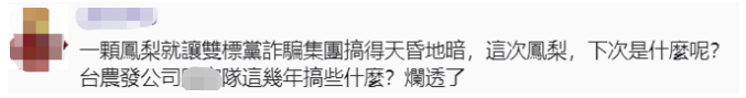 還有網友説,一顆鳳梨就讓雙標黨、詐騙集團天昏地暗,這次鳳梨,下次是什麼呢?↓