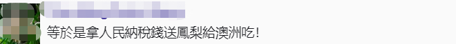 有網友説,這等於是拿人民納税錢送鳳梨給澳大利亞人吃;民進黨當局寧願虧錢也要內宣成功。↓