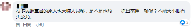 對於《自由時報》的報道,有網友不以為然,在臉書留言表示,“只有綠媒在酸葡萄”“很多民進黨員的家人也大賺人民幣,是不是也該一一抓出來罵一頓呢?不能大小眼有失公允。”。