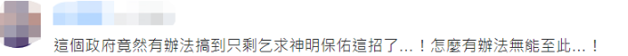 也有島內網友諷刺民進黨當局,“這個‘政府’竟然有辦法搞到只剩乞求神明保佑這招了…怎麼有辦法無能至此…”↓