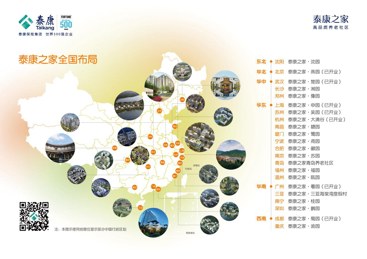 懷揣“改變中國老年人對生命的態度和養老生活方式”的理想,泰康自2007年進軍醫養領域,從率先模仿到自主創新,從引入美國CCRC持續照護模式,到首創虛擬保險與實體服務相結合的“支付+服務”模式,創新性打造出了長壽、健康、財富三大閉環,為長壽時代的到來提供了泰康方案,中國樣本。截至目前,泰康之家高品質養老社區已佈局京津冀、長三角、粵港澳大灣區、西南、華中等核心區域的22個重點城市,可容納約5.5萬名老人,全國已有7家養老社區投入運營,深受市場歡迎,近4500位泰康居民入住社區,吸引了北京大學教授錢理羣、中科院院士王鼎盛、著名教育家劉道玉、著名導演鄭洞天等一大批專家、教授、院士、藝術家等社會知名人士入住。長輩們認同泰康居民的身份,主動參與、運營社區活動,投入自我,增強社交,互相影響,形成一個富有生命力的養老社區文化,泰康之家領跑中國康養市場。