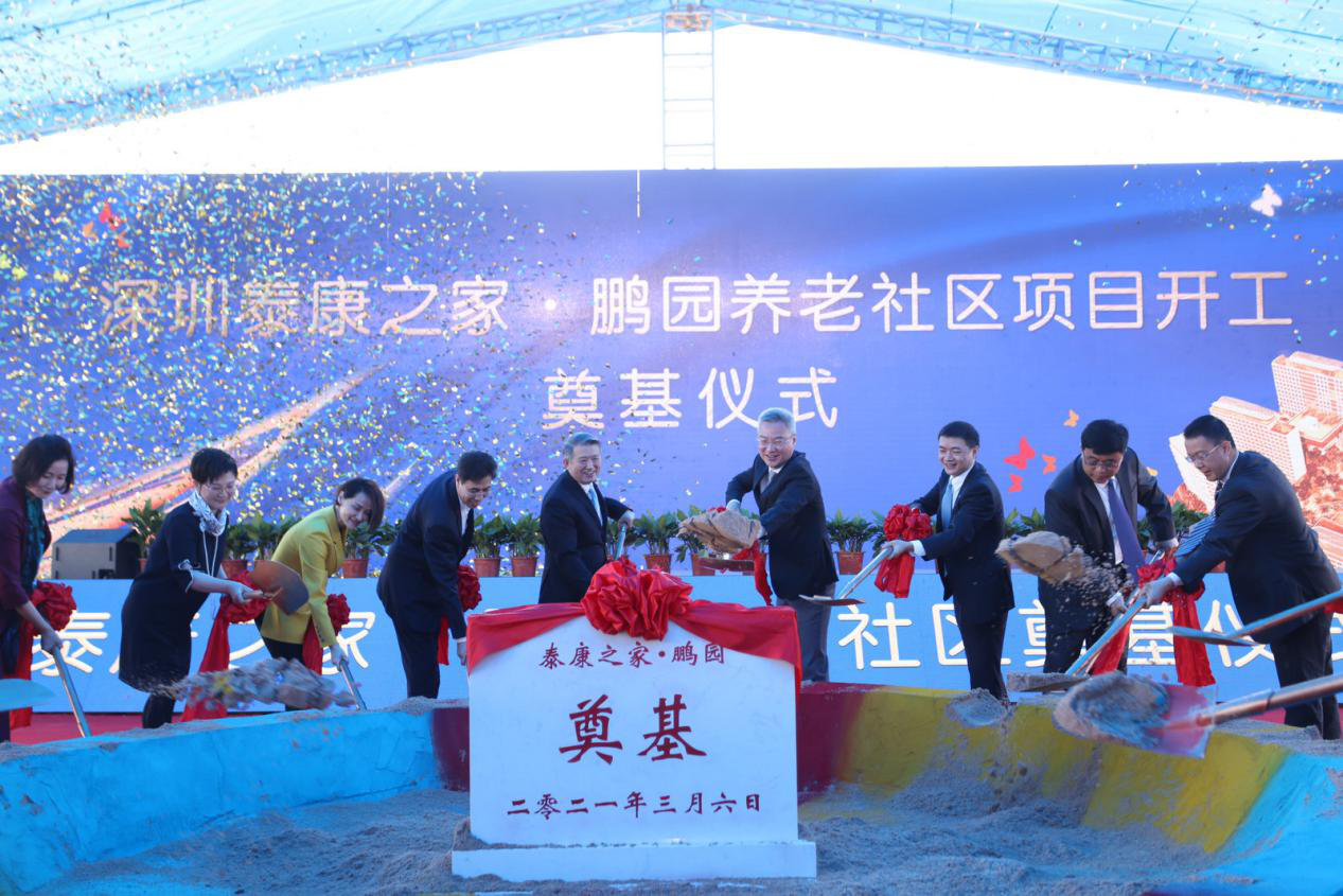 2021年3月6日,由世界500強企業泰康保險集團投資興建的高品質養老社區——泰康之家·鵬園在深圳舉行開工奠基儀式,這是泰康在深圳佈局的首家、粵港澳大灣區佈局的第二家大規模、全功能、國際標準的高品質養老社區,建成後將有助於紓解灣區日益嚴峻的養老壓力。