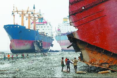 目前,全球共有5.3萬條商船運行,每年約1000條報廢船待拆解,大部分船隻廢料皆可循環再用。因此,拆船業在上世紀中期一度成為炙手可熱的產業,催生一批靠此發家的“拆船大王”。目前,南亞的印度、孟加拉國和巴基斯坦三國佔據全球拆船業70%以上的市場份額,累計每年拆解的輪船約1700萬噸。
