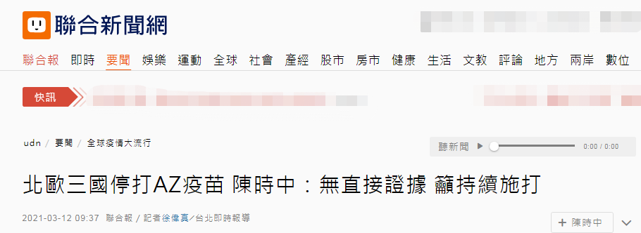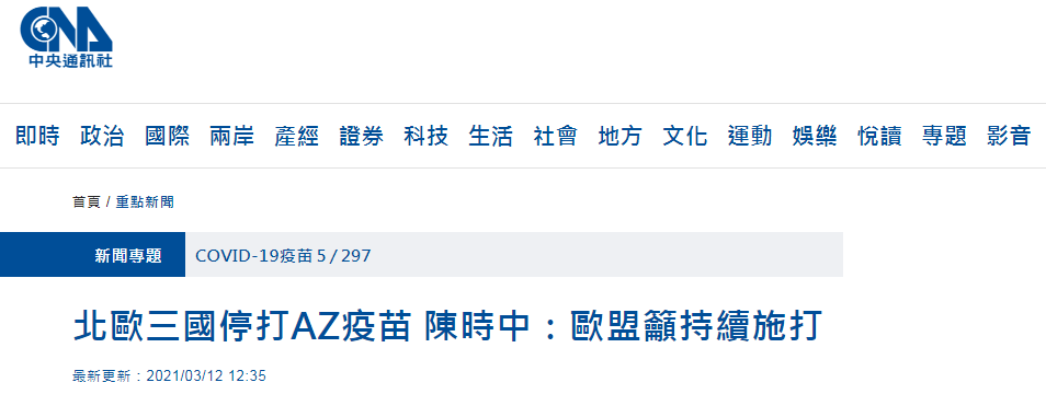 歐洲8國暫停接種阿斯利康疫苗,民進黨當局:台灣繼續打