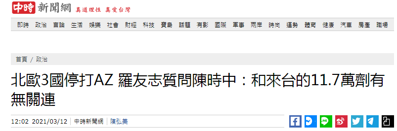 對於歐洲多國暫停施打阿斯利康疫苗,陳時中仍表示台灣會繼續施打此疫苗,台灣資深媒體人羅友志12日在臉書發文質問陳時中,“這跟上禮拜大韓航空送來的11.7萬劑疫苗有沒有關聯?” 羅友志表示,如果是同一批貨,下禮拜台灣醫護人員卻要打,台灣是有更進步的“科學證據”,還是純粹把醫護人員當黑猩猩、小白鼠來耍?“人家不要的,我們來,是這樣嗎?”羅友志問。