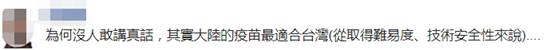 還有網友説,為何沒人敢講真話,其實大陸的疫苗最適合台灣(從取得難易度、技術安全性來説)……↓
