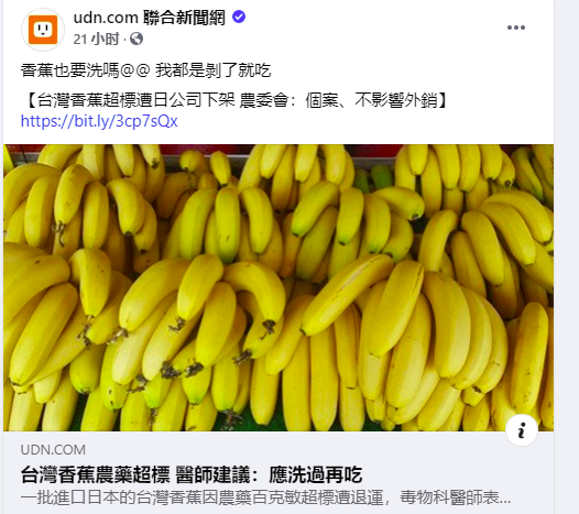 台灣香蕉農藥超標被日本下架,台醫師建議洗過再吃…台網友:第一次聽説香蕉要洗