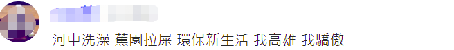 有網友諷刺稱,“河中洗澡,蕉園拉屎,環保新生活,我高雄,我驕傲。”↓