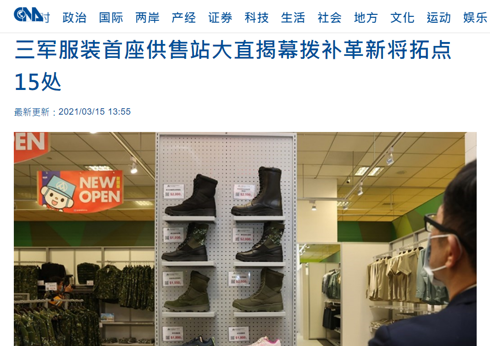 據台灣“中央社”15日報道,台軍首個服裝門店於當日正式開業,還專門開設了服裝網購的APP,該消息讓島內不少媒體非常興奮,對此事做了詳細報道。