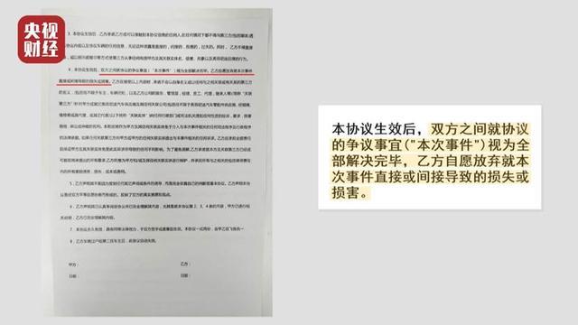 車主朱先生認為,這個協議就像一個不平等條約一樣,屈辱性地給一些好處,就把這個事情瞭解了,不要聲張了,他認為這是不合理的。
