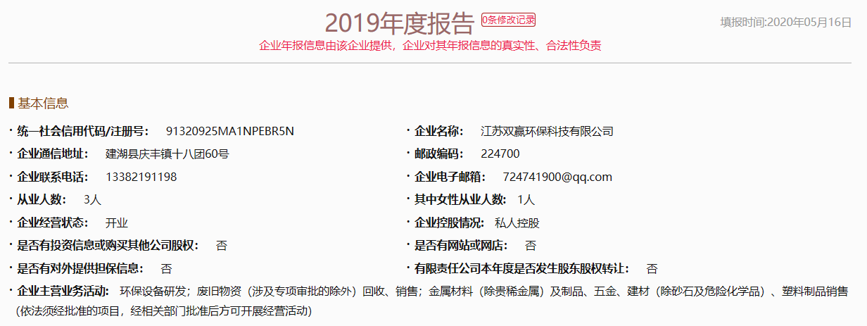 不僅如此,根據“江蘇雙贏環保科技有限公司”發佈的2019年度報告,該公司披露當年營業總收入僅為5382.97萬元,這相比大地海洋披露的向該公司採購金額還少了近千萬元。