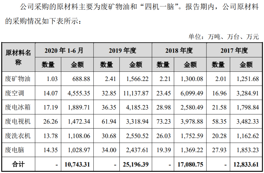 在此背景下,截止到2020年上半年末,主要用於核算公司採購的電子廢物、廢礦物油和危廢處置輔料等的原材料存貨科目餘額僅為173.85萬元,並不足以涵蓋1.88萬台廢電視機和1.5萬台廢空調對應的價值,並不符合正常的會計核算邏輯。