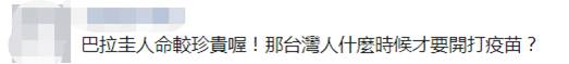 不過,聽完俞大㵢“沒有轉讓只是買單”的回應後,台灣網友更生氣了。有網友説,“自己命都不要。”“到底我們的命是有多賤??”“……那台灣人什麼時候才要開打疫苗?”↓