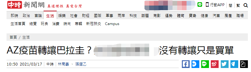 【環球網報道 記者 趙友平】島內中時新聞網3月17日消息稱,台灣近日終於獲得首批11.7萬劑英國新冠肺炎疫苗(即AZ疫苗),今天卻傳出消息稱台灣預計將200萬劑AZ疫苗轉讓給在南美洲唯一“友邦”巴拉圭救急。