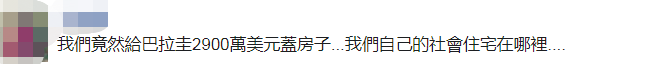 有網友感嘆:“我們自己都買不到,怎麼協助?是巴拉圭洽購,台灣出錢吧?!”“我們竟然給巴拉圭2900萬美元蓋房子……我們自己的社會住宅在哪裏……”↓