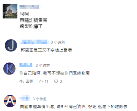 還有台灣網友回覆,是“鳳梨吃撐了”才有這樣的言論;“邱國正反正又不拿槍上戰場”。↓