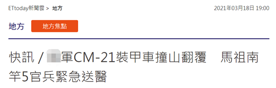 突發!台媒:台軍CM-21裝甲車撞山,5官兵緊急送醫