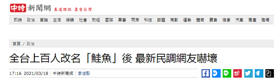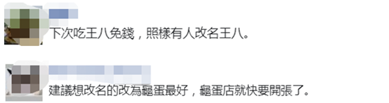 有島內網友諷刺稱,“下次吃王八免錢,照樣有人改名王八。”“建議想改名的改為龜蛋最好,龜蛋店就快要開張了。”↓