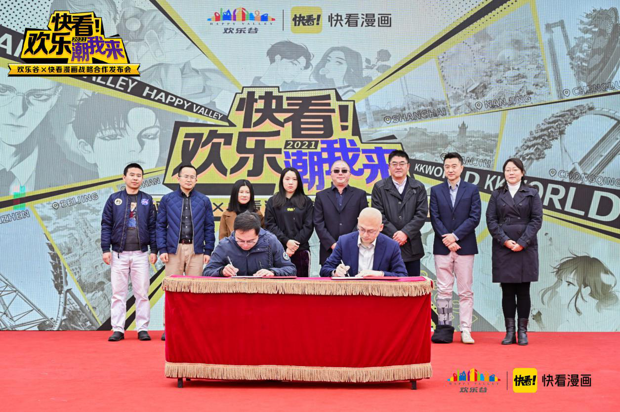 3月18日,快看漫畫與歡樂谷集團在北京歡樂谷園區舉行發佈會,雙方宣佈達成5年戰略合作,未來將在二次元代言人、國漫IP場景搭建、景區IP打造等六大緯度展開深入合作。