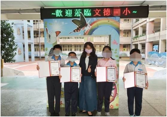 據報道,台灣新北市板橋區文德小學3月11日在官網貼出校長李慧美與4名得獎學生合照,李慧美用左手點贊,並把得獎紀錄列為學校的榮譽榜上。
