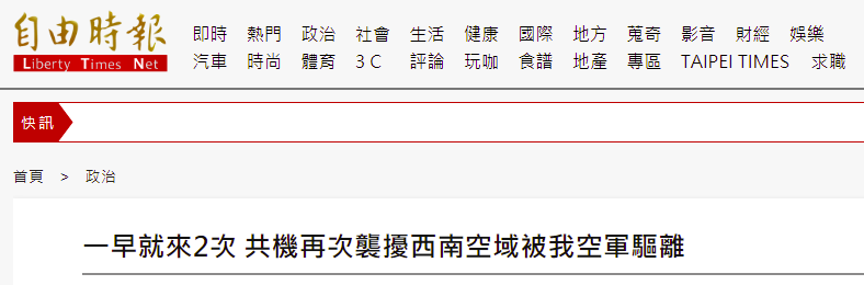 綠媒吐槽:“共機”一早就來2次,進入台灣西南空域