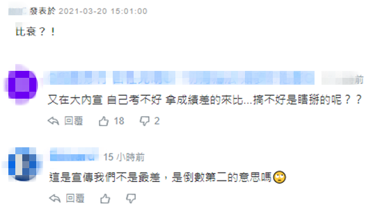 對於羅一鈞的説法,一些島內網友並不買賬,諷刺稱,“比衰?”“自己考不好,拿成績差的來比…搞不好是瞎掰的呢??”“這是宣傳我們不是最差,是倒數第二的意思嗎?”