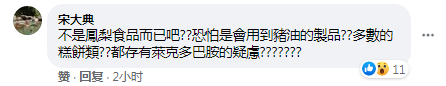 還有台灣網友擔憂表示,“不是鳳梨食品而已吧??恐怕是會用到豬油的製品??多數的糕餅類?都存有萊克多巴胺的疑慮??????”