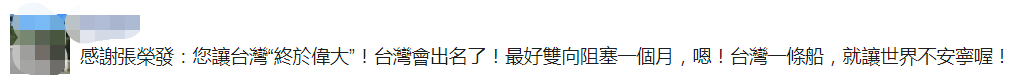 有網友説,台灣一條船,就讓世界不安寧。↓