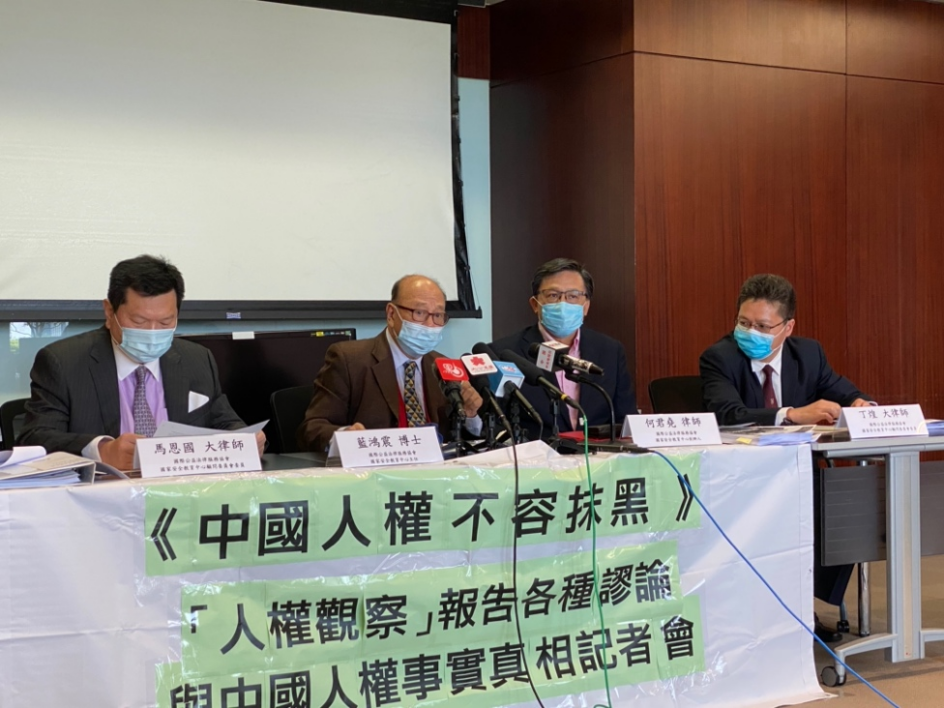 3月23日下午,香港法律界人士就“人權觀察”此前發表的相關報告召開發佈會,對香港、新疆以及西藏的不實、虛假的報告提出反駁和澄清。