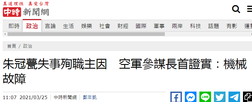 報道稱,台東空軍志航機地1架F-5E戰機去年10月29日在台東執行任務,起飛不到2分鐘後,不明原因墜落於志航基地北面海域,飛行員朱冠甍雖成功彈射,但仍傷重死亡。