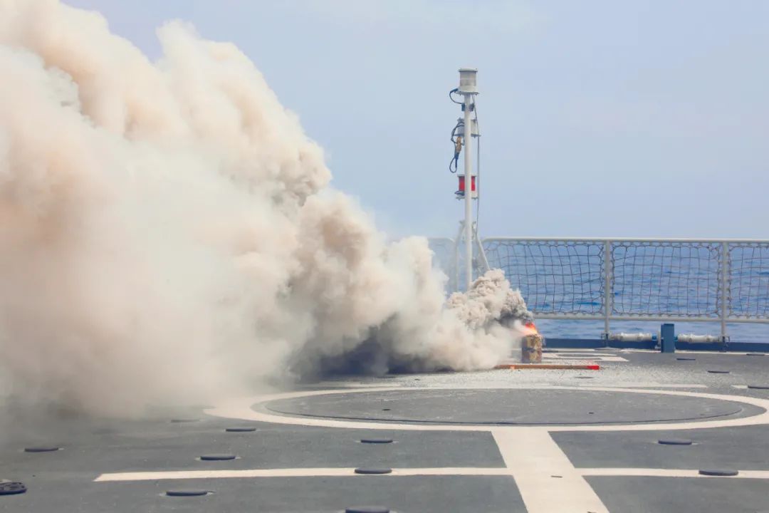 在9天的海上訓練期間,該支隊嚴格按實戰標準要求,突出重難點課目專攻精練,先後組織了綜合攻防、艦機協同搜攻潛、主炮射擊、副炮消滅浮雷、輕武器射擊等多個課目訓練。通過高強度的實際使用武器,在硝煙的淬鍊下,強化官兵備戰打仗意識和打贏本領,檢驗完善了各項作戰方案預案,有效提升了部隊整體作戰能力。