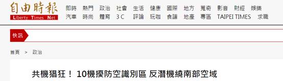 綠媒還在數:10架次解放軍軍機今進入台灣“防空識別區”