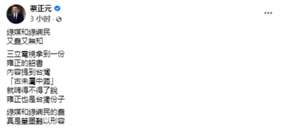 對此,國民黨前“立委”蔡正元當時舉出六大例證打臉,不僅痛批“綠媒和綠網民,又蠢又無知”,更嗆“綠媒和綠網民的蠢,真是筆墨難以形容”。