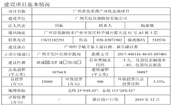 不僅如此,招股書還披露,禾信儀器本次上市計劃募投項目中,“質譜產業化基地擴建項目”的擬投入募集資金為1.09億元。針對該項目,招股書披露:公司現有產業化基地項目於 2017年7月25日備案立項(備案證號:2017- 440116-40-03-007041),項目已於2019年 6月2日正式進入總承包施工階段,截至目前,該項目的廠房建設已經封頂,正處於裝修階段。