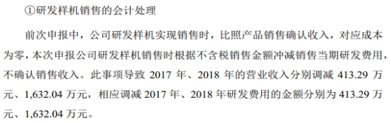 與此同時,對比前後兩次招股書(申報稿),禾信儀器對多項財務數據進行了調整,其中包括針對2018年度營業收入調減1014.33萬元,主要原因是“研發樣機銷售調減營業收入1632.04萬元”。根據招股書披露的信息,該調減項目被用於衝減2018年度研發費用,這指向公司在前次申報上市過程中,虛增“研發樣機銷售收入” 1632.04萬元。至於上述財務數據調整,是否與變更審計機構存在直接關係,禾信儀器並未接受記者採訪。