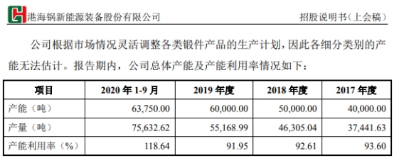 此外,根據海鍋股份發佈的招股書披露數據,該公司在2017年到2019年採購合金鋼、碳鋼、不鏽鋼的合計數量分別為45558.23噸、52934.53噸和64061.21噸,同期公司的產品總產量分別為3.74萬噸、4.63萬噸和5.52萬噸。另據招股書披露,海鍋股份的油氣鍛件原材料利用率為85%、風電設備鍛件原材料利用率為98%,平均原材料利用率約為90%左右。
