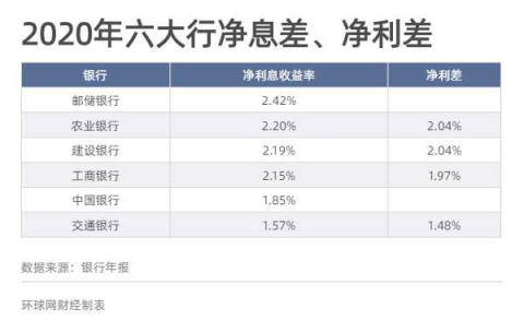2020年,六大行在財報中均提到,受貸款市場報價利率(LPR)下行以及加大向實體經濟讓利力度等因素影響,淨息差普遍出現下滑。