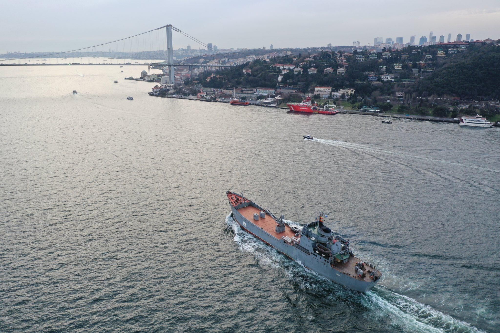 在博斯普魯斯海峽航行的俄羅斯軍艦