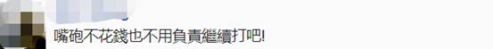 有網友諷刺民進黨當局是在打嘴炮:“嘴炮不花錢也不用負責,繼續打吧! ”↓